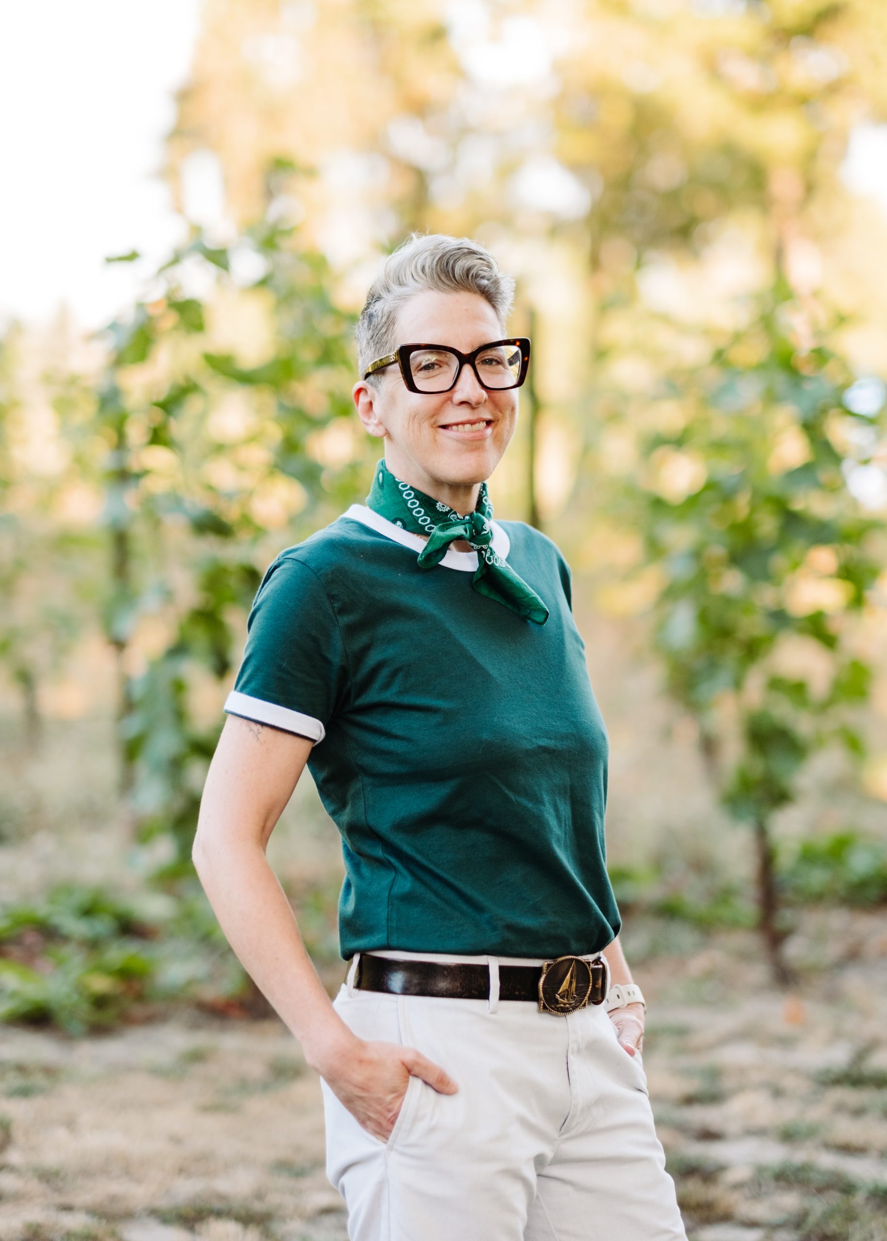 When Jacob is not wearing his Wine Country Pride hat, he is the Assistant Winemaker at Walter Scott winery, where he also makes his own wine from his vineyard FayEtta. He can also be found out in the vines, driving tractor, and with the help of his husband taking care of their many cows, goats, chickens, ducks, dogs and cats!